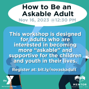 This workshop is designed for adults who are interested in becoming more “askable” and supportive for the children and youth in their lives. Being an askable adult means you are approachable and easy for children and youth to talk to about anything that’s on their mind.