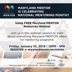 Join the MENTOR Maryland | DC Team during National Mentoring Month to learn how your new or existing mentoring program can use a variety of free resources that we offer. Be sure to register and tell a friend!